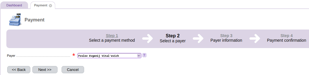 4. The system will offer you to choose a payer. By default, you yourself are the payer: